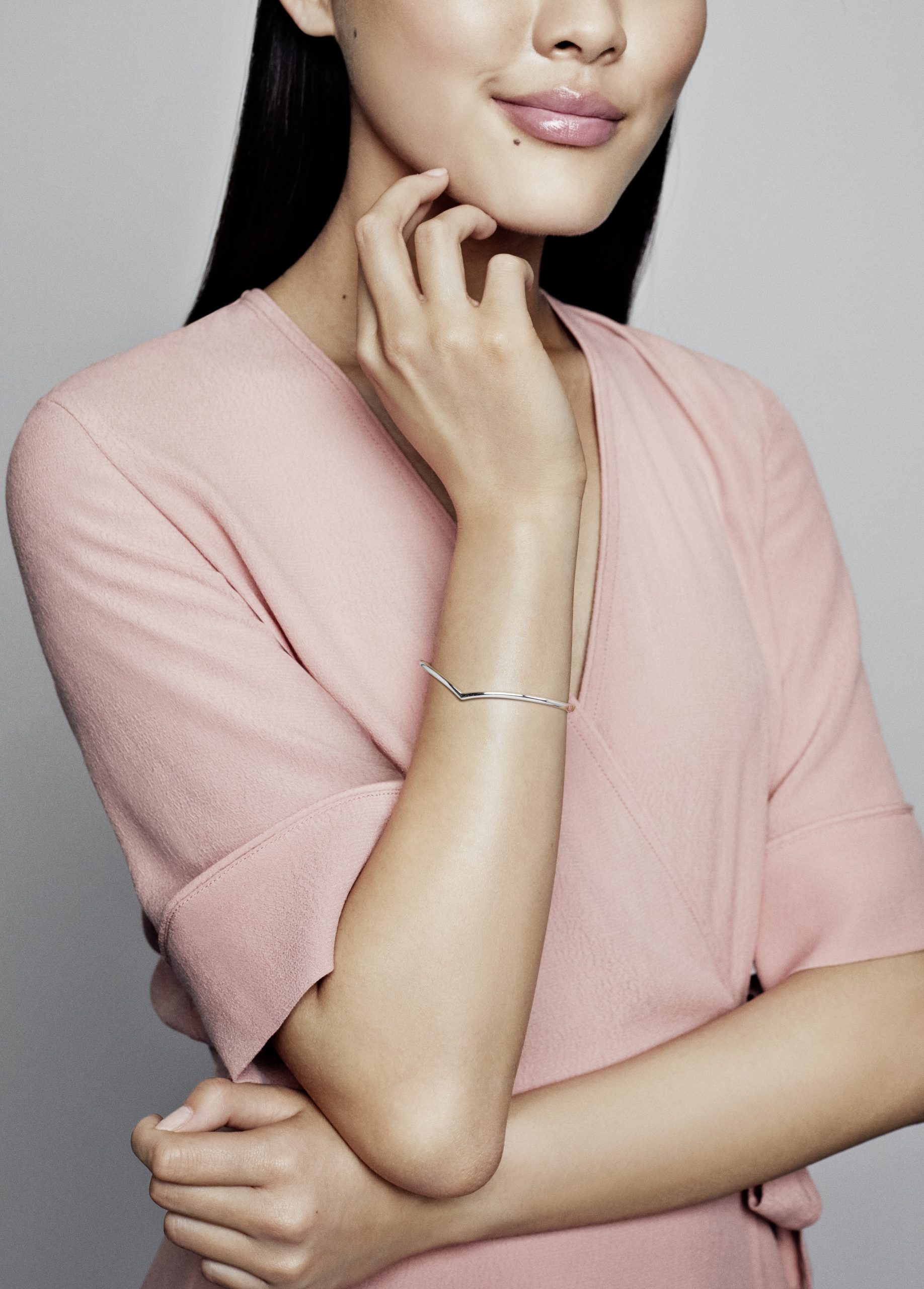 Channel a modern. yet minimalist look with this pared-back sterling silver bangle. shaped to a point to resemble the simple yet meaningful wishbone shape. The sleek and sophisticated design is traditionally a symbol of luck. The bangle is perfect worn alone as well as part of a stack of favourite bangles and bracelets.