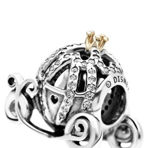 791573CZ You shall go to the ball! This enchanting Pandora Disney charm draws inspiration from Cinderella’s iconic pumpkin coach. Finely crafted in sterling silver with 14k gold detailing. the intricate cut-out design is accented with sparkling cubic zirconia stones. Team this magical carriage with other Pandora Cinderella charms for your very own happily ever after….