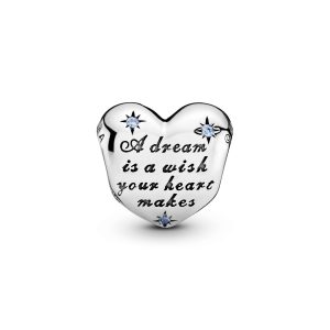 Item #791593CFLWe all need a reminder that dreams can come true. This charm is shaped as a heart that’s been engraved with the words A dream is a wish your heart makes. The sterling silver charm for Pandora Moments bracelets is inspired by Disney’s Cinderella and detailed with pastel blue cubic zirconia for subtle sparkle….