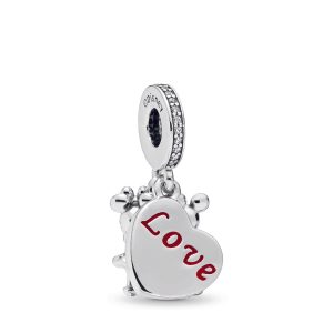 Item#797769CZR Put the love in your style with Disney sweethearts Mickey and Minnie Mouse. immortalised on this sweet dangle charm. The sterling silver design is detailed with hand-applied red enamel hearts and glittering cubic zirconia touches. Wear it as a reminder of a loving relationship. It also makes a thoughful gift to represent a story…