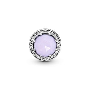 Item#791725NRP PANDORA’s double-sided button-shaped charm channels a vintage look. Crafted from sterling silver. hand-set with purple crystals and clear cubic zirconia. this decorative charm is finished with rows of cut-out hearts. Material: Sterling silver