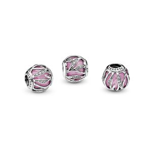 Item #791969PCZ The abstract beauty of nature puts a captivating spin on your style. Centred with a faceted cubic zirconia in pretty pink. this sterling silver charm has cubic zirconia-embellished lines that look like leaves. It’s made for Pandora Moments carriers so add yours to a bracelet or bangle styling to give it personal meaning….